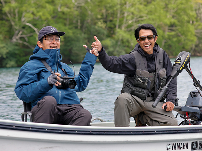 ラストは、一般エリアで手漕ぎボートの釣り、またはガイドツアー専用エリアで動力船を使った釣りなど、お好みのスタイルをお選びください。 どちらもインストラクターのガイド付きなので、自由なアプローチで然別湖の釣りをご堪能いただけます。
