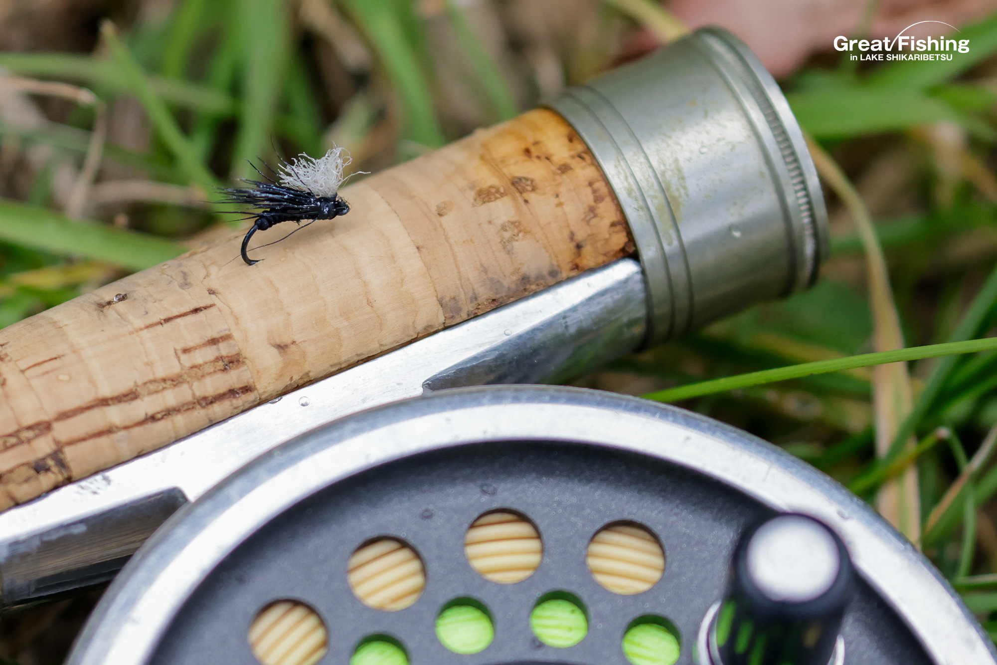 気温が上昇し始める午前10時頃から、約5mmほどのアワフキムシの活動が活発になり、湖面に落下する姿が見られます。ライズを狙う際は、岸際1〜3メートル付近を注意深く観察すると、大型ニジマスのクルージングライズを見つけることができます。