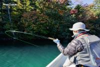 砂場ワンド周辺②からシャクナゲ岬⑦の間でカディスフライでミヤベイワナ(20㎝)1匹、ニジマス(40~45㎝)4匹ヒット(近藤さん/東京都)他。