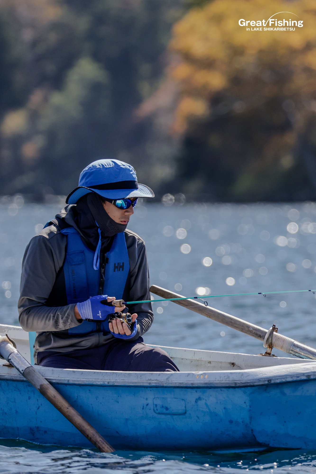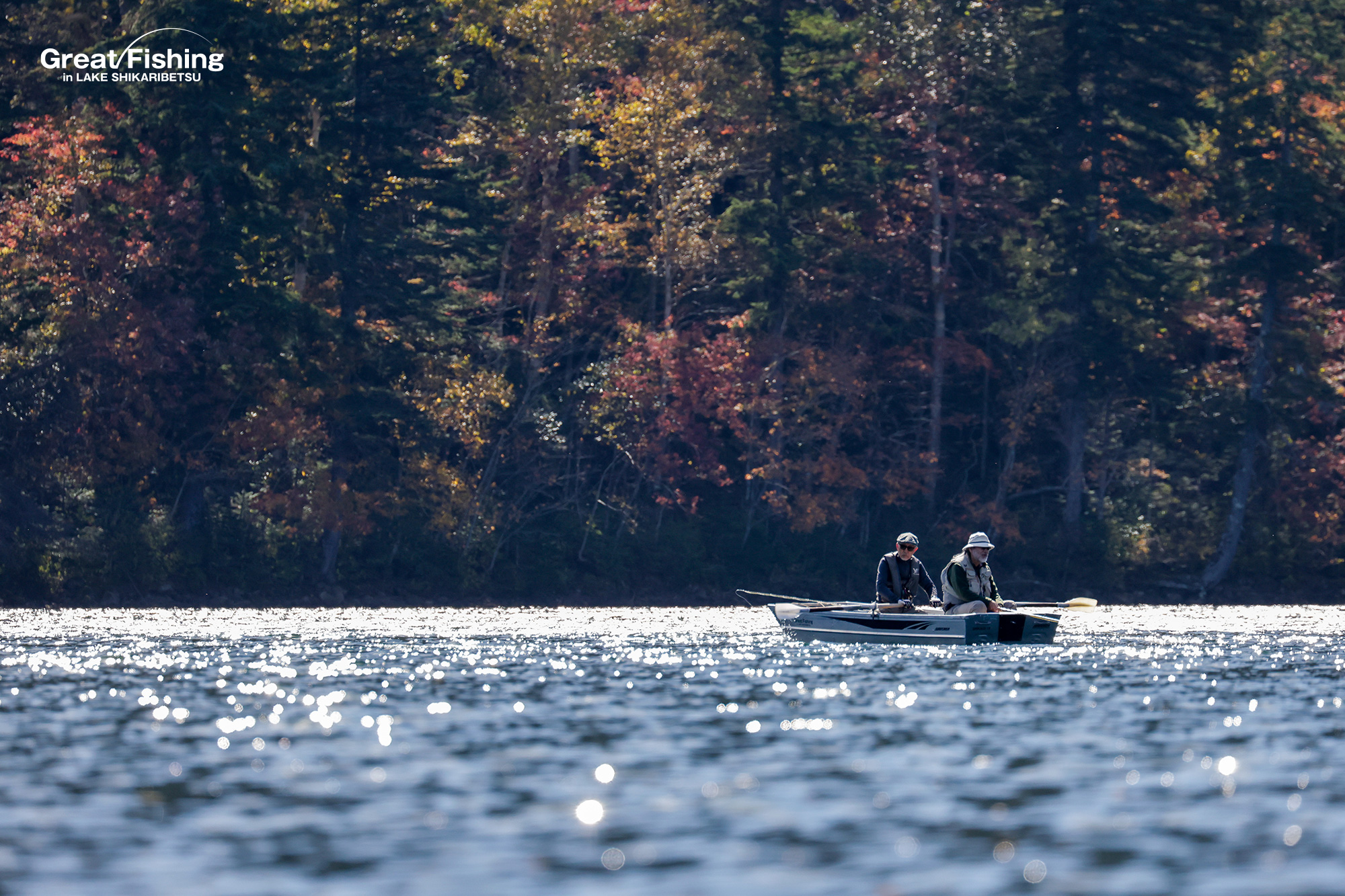 湖中央周辺㉓、境界線中央周辺㉕で(シンキングラインタイプⅦ+ストリーマー(赤/黒))をハーリングしてミヤベイワナ(25~40㎝)4匹、ニジマス(38~45㎝)4匹ヒット(香川さん/芽室町)。