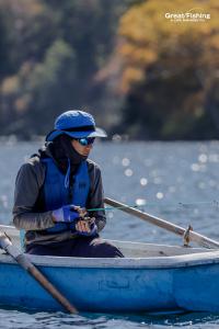 アイサ岬⑭、2の湾沖周辺㉒、湖中央周辺㉓でスプーン8g(青/銀)を15~20秒沈めてトローリングでミヤベイワナ(25~32㎝)4匹ヒット(伊藤さん/横浜市)。