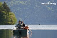 久しぶりの晴天に恵まれた然別湖。爽やかな風を受けて湖で釣りをするのはとても気持ちのいいものです。しかしミヤベイワナは晴天になると、さらに深場へ潜る傾向があります。そうなるとルアー、フライともタナをしっかりキープすることが困難になり釣り人は悪戦苦闘。水深10m以下の深場に完全に下がってしまった場合はルアーは10〜20gの重いものがおすすめですが、なかなかフックアップしなかったり、バレが多いときなどは軽めのルアーに交換してみましょう。フライでは、シンキングライン(タイプ6〜8)を使わなければなかなかミヤベイワナをヒットさせることができません。ポイントはうぐいす湾中央、音更湾中央、禁漁境界線中央付近など水深のある場所が良く釣れています。トローリングは連日好調。サクラマス(35〜40cm)は音更湾岸釣りエリアでフライ(ストリーマー)でヒットしています。