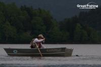 ファーストステージ18日目。早朝〜午前9時頃までは、湖中央ポイント(12)、水深(4〜5m)で釣れていたミヤベイワナ(25〜33cm)も、湖面に夏の強い日差しが差し込むと一気に深場に潜り、ヒットレンジは水深(8〜10m)。ここまで深くなるとキャスティング&リトリーブの釣りは難しくなり、ボートでゆっくりトローリングしてヒットレンジをキープする方法が好結果を出しているようでした。今日の最高釣果は10匹(伊藤さん/釧路市)。