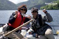 今日初めて然別湖で釣りしていた女性がミヤベイワナを釣るために湖中央のポイントへ・・・ボートでゆっくりトローリングしていた時に大きなアタリ! ロッドに伝わる魚の強烈な躍動感、それはみごとな大型ニジマス47cm。帰りに受付事務所に提出して頂いた釣果データのご意見ご感想欄には「今日はたくさん釣れました、釣りガールになりそうです」とコメントされていた(栗原さん/鹿追町)。