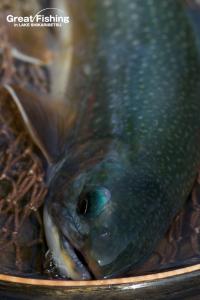 早朝から午前10時頃まで、湖中央ポイント【18】、【19】の水深(1〜3m)でミヤベイワナ(25〜30cm)が釣れていましたが、午後になるとヒットレンジは水深(4〜10m)へ。例年、ミヤベイワナが深場に下がりだすと釣果は低迷します。深場に居る魚を釣るためには、ルアー、フライを確実に沈めるようにしてみましょう。ルアーは(スプーン12〜14g)、フライラインはシンキングタイプ6〜8が有効です。