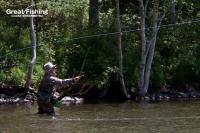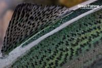 岸から約10m以内のかけ上がりでは、大型ニジマス(40〜43cm)、サクラマス(30〜45cm)が釣れています。音更湾インレット岸釣りエリアで、ニジマス(40cm)、サクラマス(30cm)、ミヤベイワナ(35〜40cm)が連続ヒット(上杉さん/岐阜県)。ラインはシューティングヘッド(タイプ2〜3)、ヒットフライは、(#8マラブー/黒、オリーブ)。ヒットは午前中に集中したようです。