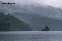 雨が降っている時はストリーマー、雨が止んだ時にはドライフライ(#10エルクヘヤーカディス)で、ミヤベイワナ(30〜38cm)が釣れています。ポイントはうぐいす湾奥、音更湾インレット周辺(半沢さん/山形県)。湖中央や音更湾沖でもミヤベイワナのライズ&ヒットがありますが(25cm)程度の小型が多いようです。ミヤベイワナのヒットレンジは午前は水深(2〜3m)、午後からは水深(4〜5m)。虹色岬周辺、音更湾インレット、カルガモ岬周辺では良型ニジマス(35〜38cm)、思い出岬周辺のかけ上がりでは大型ニジマス(40〜50cm)がフライ、ルアーで釣れています。今日の最高釣果は15匹(平尾さん/宇都宮市)。