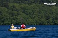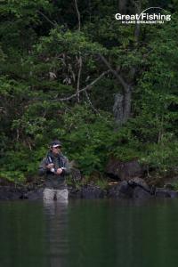 ここ数日間、連続の晴天でミヤベイワナのレンジは深く厳しい状況。今日は早朝のベタ凪から一転、湖中央でやや強い風が吹き、湖面が波立つとミヤベイワナが水深(2〜3m)で連続ヒット(丸尾さん/長崎県)。うぐいす湾では、ドライフライ(#12エルクヘヤーカディス)で、ミヤベイワナ(32cm)がヒット(佐々木さん/神奈川県)。ウェーディングからのスペイキャスティングでは、ニジマス(35cm)、サクラマス(35cm)がヒット(高山さん/神奈川県)。今日の最高釣果は12匹/ワンボート(丸尾さんご夫婦/長崎県)。