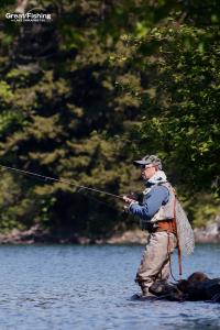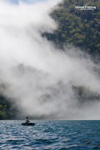ミヤベイワナ(27〜40cm)は湖中央㉓㉔㉕の水深(1〜3m)で(シンキングラインタイプ2+#6ストリーマー)に8匹、ニジマス(35cm)、サクラマス(20〜25cm)5匹ヒット(山畠さん/札幌市)。うぐいす湾沖ではミヤベイワナ(20〜45cm)が(シンキングラインタイプ5+シンクティップ+トトモビール)で15匹ヒット(荒井さん/佐賀県)。境界線㉕周辺ではミヤベイワナ(25〜35cm)が(ストリーマー/ブラック)で15匹、回遊型の大型ニジマス(50cm)がヒット(井上さん/東京都)ほか。