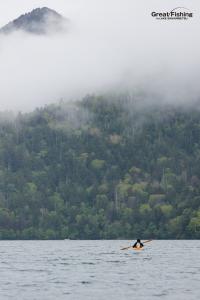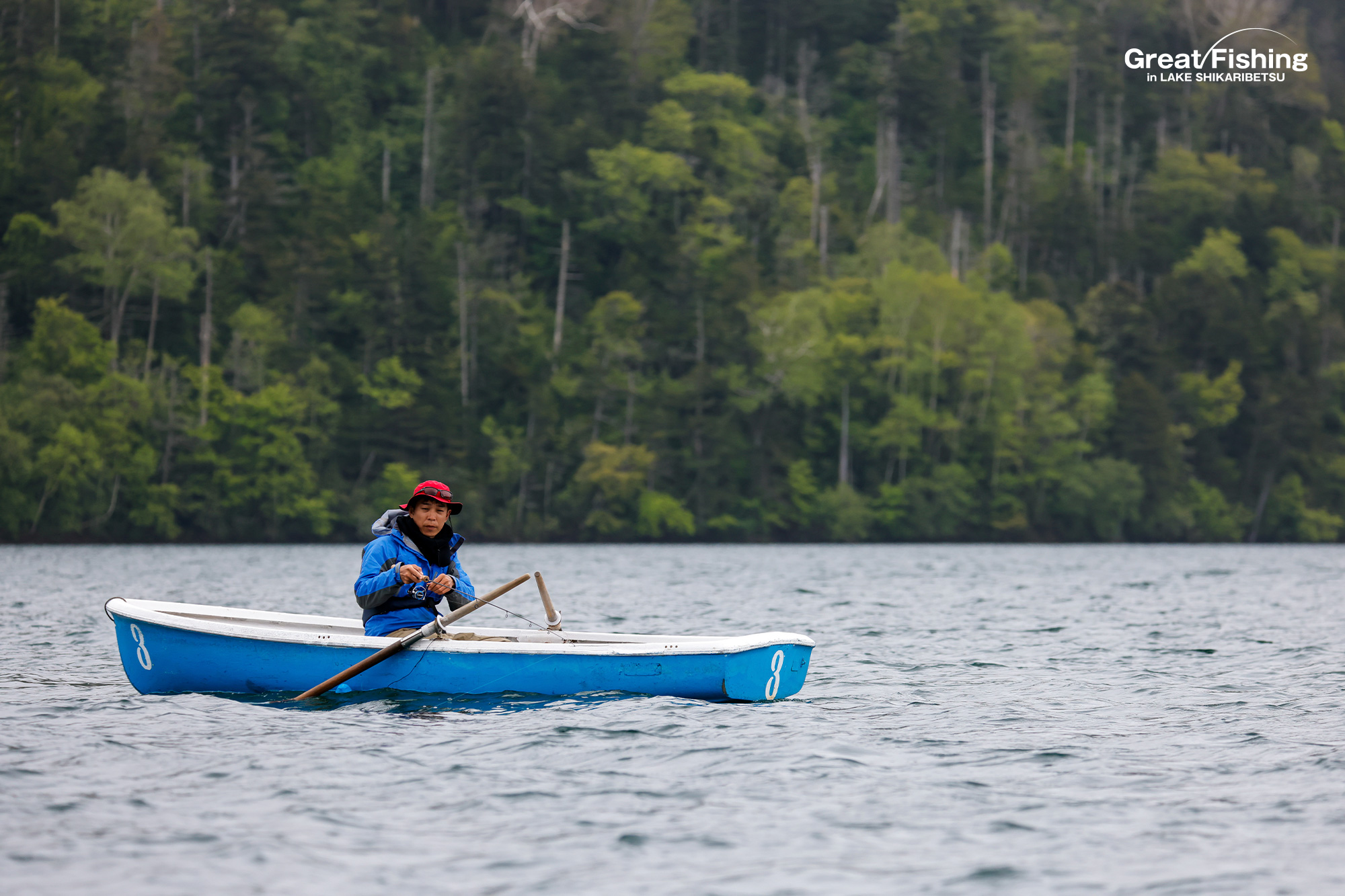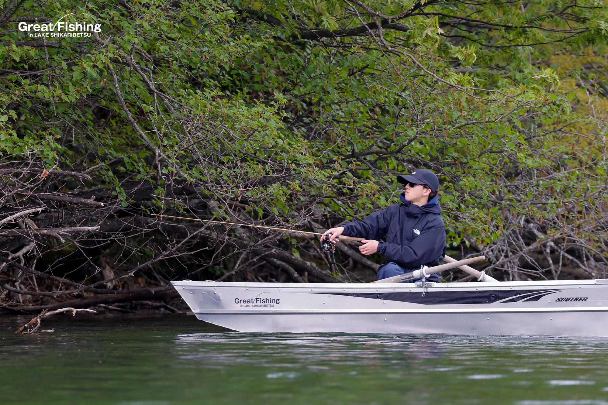 音更湾沖周辺㉔、境界線中央周辺㉕、イワナ岬⑬周辺で、ミヤベイワナ(25〜33cm)17匹、そのうち11匹がキャスティング&リトリーブでヒット(伊藤さん/札幌市)、ヒットルアーはスプーン7〜10g(黒/シェルなど)、ヒットレンジは(5〜10m)。虹色岬③周辺、シャクナゲ岬⑦周辺、湖中央周辺㉓で、ミヤベイワナ(18〜28cm)5匹ヒット(横山さん/幕別町)、ヒットルアーはスプーン7g、ヒットレンジは水深(2〜3m)ほか。