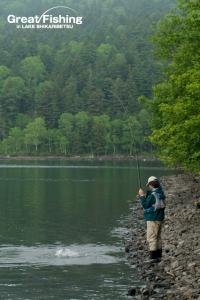 ミヤベイワナ(25〜35cm)は、イワナ岬沖、アイサ岬沖、シャクナゲ岬沖、湖中央の水深(3〜7m)でタナに当たると良く釣れるようです。サクラマス(30〜35cm)は、うぐいす湾、シャクナゲ岬で釣れていますが釣果は少数。