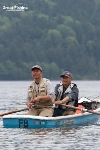 全体的にミヤベイワナの活性が低迷し、小さなアタリ数回で、ヒットしないケースが多いようでした。(スプーン9g)で、ミヤベイワナ(25〜30cm)が、午前は水深(2〜3m)、午後は深場で7匹ヒット(時川さん/沖縄県)。(スプーン10g/黒/パール)で、ミヤベイワナ(25〜35cm)水深(7〜10m)で5匹(坂本さん/東京都)。(スプーン12g/黒・金・橙)で、ミヤベイワナ(25cm)が4匹(藤田さん/愛知県)他。