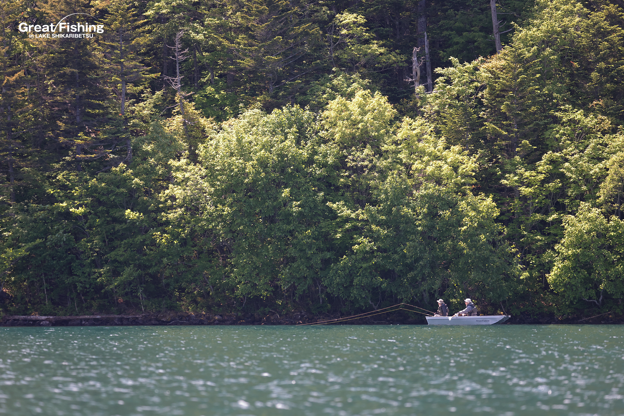 思い出岬⑰で大型ニジマス(50cm)が(スプーン10g緑/金)でヒット(高田さん/札幌市)。音更湾⑨で大型ニジマス(40〜42cm)が(#6エルクヘアーカディス/オレンジ)(#10ビーズヘッドニンフ/ブラック)で2匹ヒット(村上さん/弟子屈町)。同ポイントで大型ニジマス(40cm)が(スプーン14gブルー/ピンク)にヒット(田沢さん/札幌市)ほか。