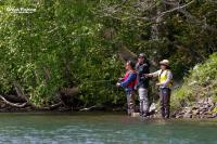 シャクナゲ岬⑦、音更湾南側岸周辺⑧、音更湾インレット周辺⑨で、大型ニジマス(40〜45cm)5匹、ニジマス(35cm)4匹、サクラマス(25〜30cm)3匹ヒット(三浦さん/横須賀市)、ヒットフライは、#10ライツロイヤル、#10マラブー。虹色岬③で、大型サクラマス(41cm)1匹ヒット(藤田さん/佐呂間町)。うぐいす湾奥④で、ドライフライ(#10エルクヘヤーカディス)に大型ニジマス(40cm)1匹がヒット(中川さん/甲府市)ほか。