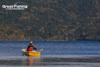 音更湾の奥中央付近でニジマス(40cm)がフライで釣れています。ヒットしたフライは8#ゾンカー(黒またはオリーブ)。岸から8〜12m離れた水深5〜6mでアタリがあるようです。岸近くではあまりヒットは無いので、ロングキャストできるスペイやスカジットが有効。同じく岸釣りエリアでミヤベイワナ(41cm)がルアーで釣れています。ヒットゾーンは岸から20〜30m沖のべた底付近です。ボートからのキャスティングまたはトローリングでは水深15mが一番良く釣れているタナでした。今日は全体的に釣果は渋く、タナを確実に合わせた場合のみ10〜15匹の数釣りができます。ミヤベイワナが群れる場所はその日によって変わるので、湖中央付近を広めに探ることが大切です。