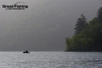 湖の中央ポイントでミヤベイワナが水深10m前後で釣れています。キャスティングでもトローリングでも釣れますが、数釣りを楽しむのならトローリングが有利。14〜18gのルアーをタナまで沈めてゆっくりゆっくりボートを漕げばアタリが取れます。アタリがあっても合わせずにリールを巻きながらフックアップさせるとヒットします。釣れるミヤベイワナ(30〜40cm)は、グリーンバックが多く、型は小さいですが(25〜30cm)のブルーバックも少し釣れています。