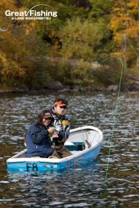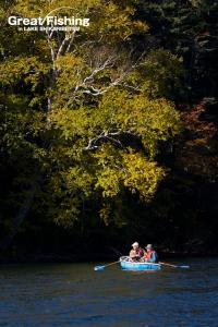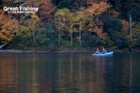 連日、湖中央ポイント[18][19][20]でミヤベイワナ(20〜35cm)が釣れています。ミヤベイワナの群れとレンジがピタリ当たれば連続ヒットもあり。今日、良く釣れていたルアーは、スプーン(5〜10g)アワビ系または、シルバー。トローリングでは、水深(2〜3m)で良く釣れていますが、(30cm未満)のサイズが中心。サイズアップを狙う場合は、水深(7〜10m)あたりまで探ると良いようです。また、同じ水深で小型サクラマス(20〜25cm)の群れに当たると、ミヤベイワナより先にバイトしてくるので、ミヤベイワナを狙う時には避けなければなりません。全体の釣果は一人(1〜5匹程度)今日最高の釣果は12匹(小林さん/相模原市)