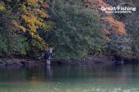 セカンドステージの魅力のひとつ「大型ニジマス」。秋のニジマスは体高が高く、抜群のコンディション。50cmを超えるニジマスのファイトは力強く、ラインブレイクも多い。捕食しているのは、掛け上がり周辺の稚魚や、ザリガニ、小型の陸生昆虫。今日も各ポイントでは(40〜52cm)のニジマスが釣れています。ヒットフライは、#16ブラックカディス、ブラックパラシュート、#8ゾンカー/パープル等。※午後から終了時間に掛けてのヒットが多いようです。