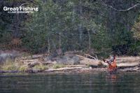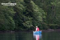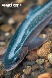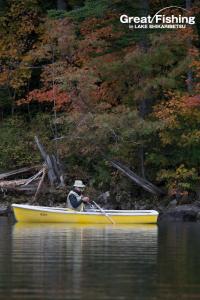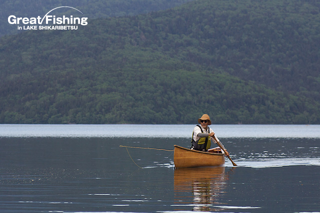 ミヤベイワナはあまり岸寄りしておらず、湾の中央や湖中央が狙い目。ルアー、フライを水深(5〜7m)まで一旦沈めて、スローでリトリーブしてみましょう。