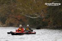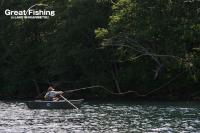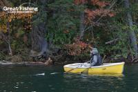 ボートからニジマスを狙う場合のタックルは、#5〜#7シングルハンドまたはスイッチロッド(9〜11フィート)。リーダー&ティペットは(3〜4X)長さは15〜16フィート程度が良いでしょう。ラインはフローティングライン(WF)。フライは、#8〜#10テレストリアル系、マドラーミノー、ウェット、ゴールドビーズヘヤーズイヤーなど。(※)マドラーミノーやウェット、ニンフはスローリトリーブが効果的。