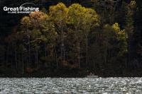 大型ニジマス(40〜59cm)のヒットポイントは、思い出岬周辺、ニジマスワンド、砂場ワンド周辺、シャクナゲ岬周辺、音更湾北側ワンド。ヒットレンジは(1〜3m)、ヒットルアーは、スプーン5〜8g(ピンクシェルやアワビなど)、ヒットフライは、#6〜8ウーリーバガー、ゾンカー(ブラック)、#12ゴールドビーズヘッドマラブー(ブラック)など。(※)水中に沈んでいる倒木周辺は要チェック!
