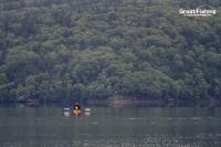 昨日と今日の早朝の気温は8℃。日中の最高気温も17℃と低く、昨日同様、陸生昆虫が非常に少なく、ニジマスのドライフライへの反応は渋いようでした。午後から1の湾(桟橋周辺)で単発のライズがあり、ニジマス(40〜45cm)2匹が、#12ビートルでヒット(高橋さん/幕別町)。(シンキングラインタイプ2)+(ストリーマー/アクアマリン)のハーリングでは、ニジマス(35〜40cm)4匹ヒット(金澤さん/中札内村)。ルースニングでは、思い出岬周辺ポイント⑮ で、ニジマス(52cm)がヒット(高橋さん/鹿追町)。(ビーズヘッドニンフ/黒)で、ニジマス(26〜32cm)2匹、サクラマス(30〜34cm)3匹ヒット(鳥原さん/旭川市)他。