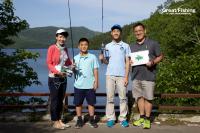 セカンドステージ初日からニジマスは連日好調。音更湾ポイント[9]音更湾北側ワンド周辺では、リップレスミノー5cm(チェリー/ブラウン)を岸から3m以内の、水深(30〜50cm)をリトリーブしてニジマス(51cm)がヒット、(式地さん/東京都)。シャクナゲ岬周辺[6]〜うぐいす湾奥[4]では、陸生昆虫(18#ケバエ)などに、ニジマスが多数ライズ。(35〜48cm)をドライフライ(#16パラシュート)で3匹ヒット(高下さん/岩手県)。うぐいす湾奥[4]岸釣りエリアでは、(48cm)をドライフライ(#16パラシュート)でヒット(下田さん/埼玉県)。同じく、うぐいす湾岸釣りエリアで、(30〜46cm)を(#18アントパラシュート)で5匹ヒット(坂さん/札幌市)。音更湾ポイント[7]音更湾南側岸周辺では、午後12時頃から多数のライズ。ドライフライ(#16パラシュート/黒)で、(30〜40cm)が5匹ヒット(藤代さん/東京都)他多数。
