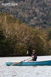 3の湾ポイント[14]湯の花岬周辺では、ニジマス(38cm〜55cm)が7匹、2の湾ポイント[15]思い出岬周辺では、ニジマス[40cm〜52cm]が3匹。ヒットはすべてフローティングミノー4.5cm(黒/シルバー)、ヒットポイントはすべて岸から3m以内のかけ上がり水深約50cm。時間帯は午前11時〜午後2時。1ボート2名の釣果(喜島さん/千歳市)。