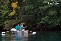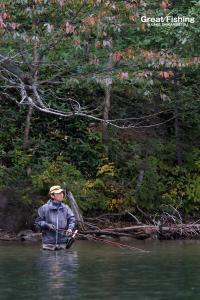 ⑨ 音更湾北側ワンド周辺では、フライ(ストリーマー)で大型ニジマスが好調。岸から約20〜30m沖に(#8マラブー/オリーブ)をキャストしてからのリトリーブで、ニジマス(60cm1匹、50cm2匹、40cm2匹、35cm1匹)、サクラマス(20〜30cm)2匹ヒット(美山さん/札幌市)。