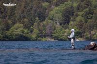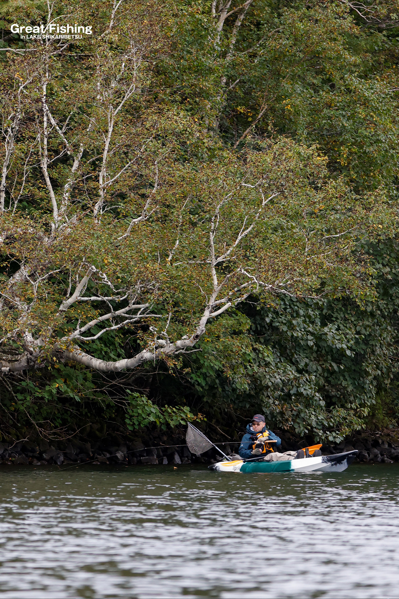 1の湾⑲⑳周辺でニジマスのライズがあり(30〜39cm)4匹(45〜55cm)3匹が(#10ビートル、#18テレストリアル)でヒット(高多さん/神奈川県)。同じく1の湾でニジマス(30cm)4匹(45〜48cm)3匹が(#10ビートル、#16CDCカディス)でヒット(林さん/仙台市)、3の湾⑮、うぐいす湾⑤⑥の岸際でニジマスのライズあり(30〜35cm)2匹、(40〜45cm)6匹が(#12テレストリアル)でヒット(佐藤さん/芽室町)ほか。うぐいす湾④では大型ニジマス(51cm)が(#16パラシュート/黒)でヒット(村上さん/弟子屈町)ほか。