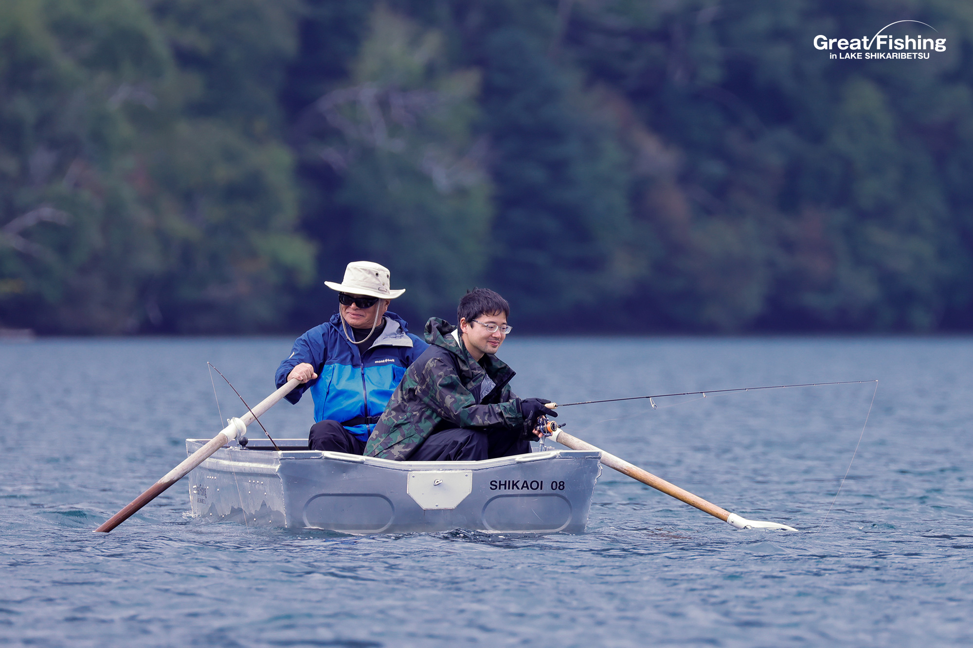 湖中央周辺㉓ではスプーン10gを60秒カウントダウンしてからスロートローリングでミヤベイワナが8回ヒット、6匹バラシ、2匹キャッチ(齊藤さん/東京都)。アイサ岬沖⑭、境界線中央周辺㉕、湖中央周辺㉓の水深(15〜20m)をトローリングしてアタリが12回程度、ミヤベイワナ(30〜40cm)3匹ヒット(宮村さん/帯広市)他。