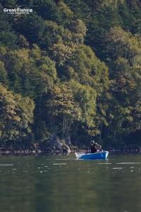 湖中央周辺㉓、境界線中央周辺㉕をレッドコアライン(5色)出してトーローリングでミヤベイワナ(25〜30cm)7匹ヒット(泰井さん/藤沢市)。湖中央周辺㉓の水深(10〜15m)でミヤベイワナ(23〜30cm)3匹がスプーン(15g)でヒット(原さん/宮城県)。湖中央周辺㉓、湯の花岬沖⑯、イワナ岬⑬沖では、サクラマス(20〜25cm)6匹ヒット(堀江さん/帯広市)他。