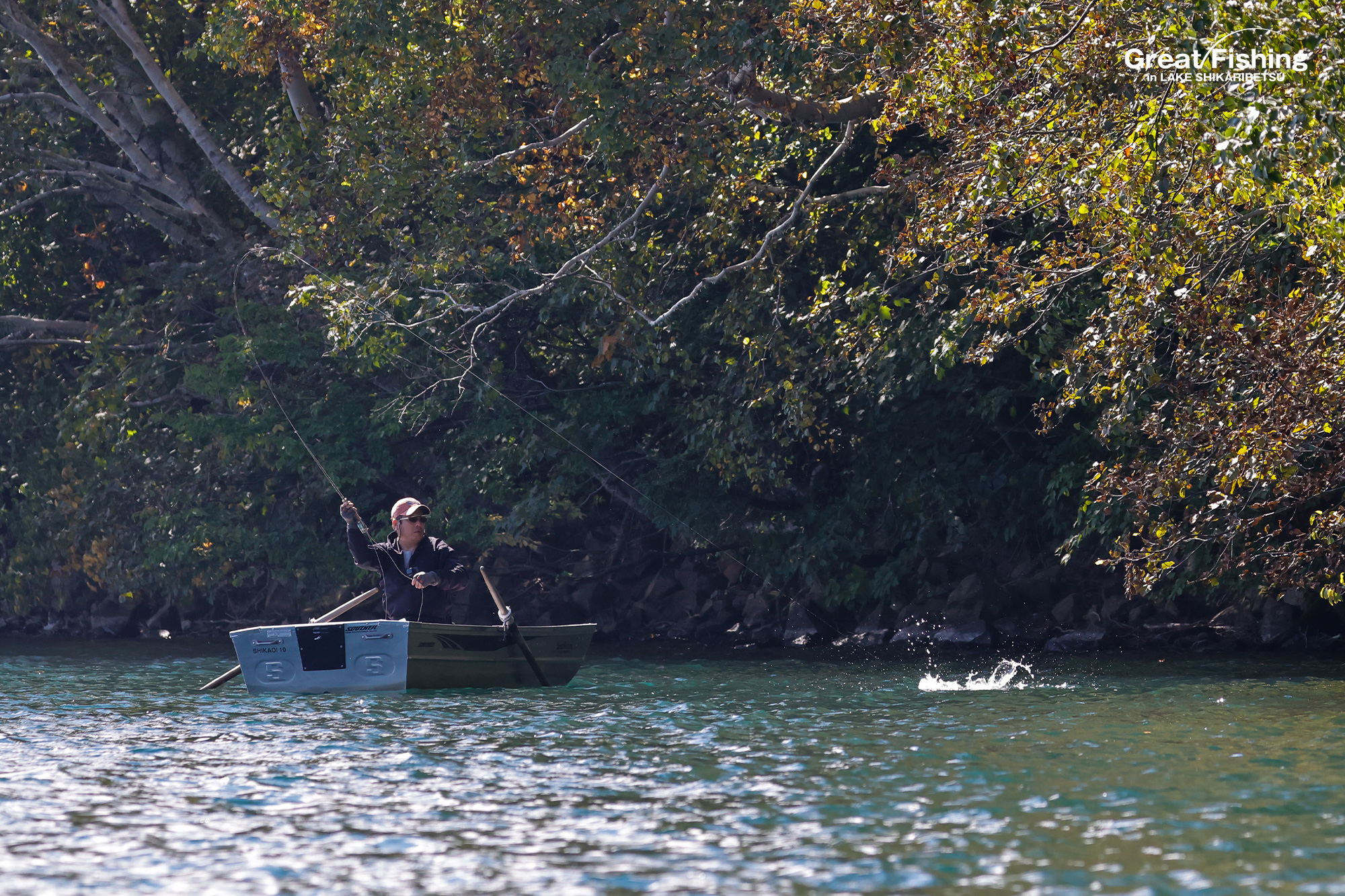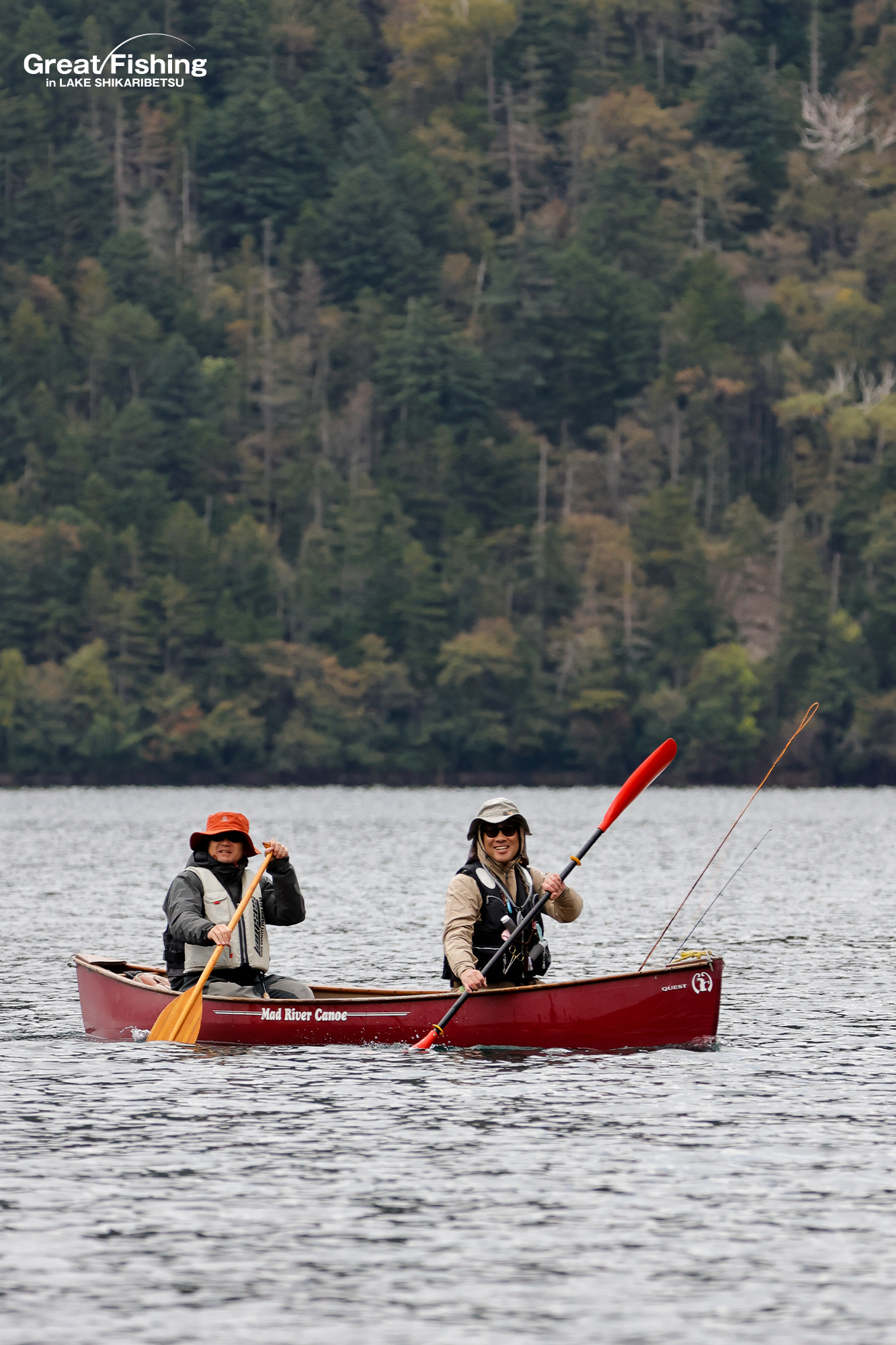 湖中央㉓、音更湾沖周辺㉔の水深(約10m)でミヤベイワナ(25cm、32cm)3匹がスプーン10gでヒット、バラシ3匹(太田さん/岩手県)。同ポイントの浅い水深(1〜2m)でミヤベイワナ(30cm、35cm)2匹がスプーン5gでヒット(奥本さん/斜里町)。アイサ岬⑭でミヤベイワナ(25cm、30cm)2匹がスプーン12g(グリーンアワビ)でヒット。1匹は秋色の婚姻色(石崎さん/帯広市)ほか。