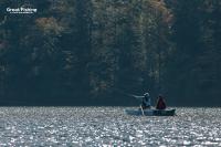 湖中央周辺㉓で、ミヤベイワナ(25cm)1匹が(シンキングライン+ストリーマー)でヒット、虹色岬③、カルガモ岬⑤で、ニジマス(25cm、35cm)2匹が、ドライフライ(チェルノブイリアント)にヒット(関さん/千葉県)。虹色岬③、シャクナゲ岬⑦、2の湾沖周辺㉒で(シンキングライン+マラブー/オリーブ)で、ニジマス(28〜35cm)3匹、音更湾沖周辺㉔で、サクラマス(30cm)1匹ヒット(金子さん/千葉県)。湯の花岬⑯、音更湾沖周辺㉔、境界線中央周辺㉕で、ミヤベイワナ(22〜26cm)3匹がスプーン12gでヒット、アイサ岬⑭で、大型ニジマス(43cm)1匹、サクラマス(30cm)1匹がドライフライ(エルクヘヤーカディス)でヒット(岡嶌さん/東京都)。