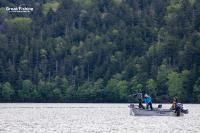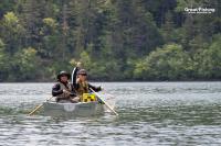 音更湾沖周辺㉔でスプーン10g(赤/金)をボート上からキャスティング後にすぐに漕ぎ出しトローリングでミヤベイワナ(30~35㎝)10匹ヒット(遠藤さん/札幌市)。うぐいす湾周辺④⑤⑥、湖中央周辺㉓で(シンキングラインタイプ3+ストリーマー)を30~50秒沈めてリトリーブでミヤベイワナ(30~38㎝)6匹、シャクナゲ岬⑦、湖中央周辺㉓でニジマス(25~30㎝)3匹ヒット(松浦さん/愛知県)。