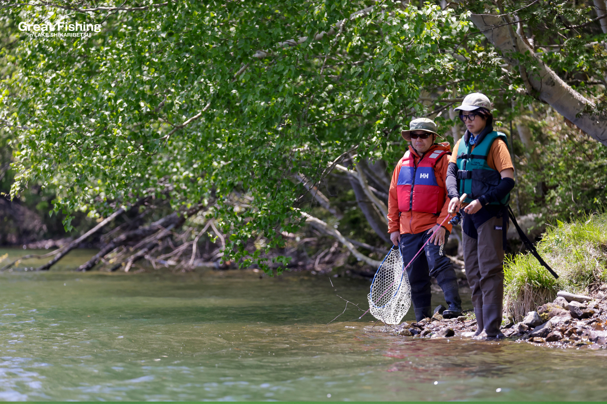 音更湾中央ガレ場⑩で(ルースニング+#10ニンフ)または、(シンキングラインタイプ3/4+#6ストリーマー)をカウントダウン50秒沈めてリトリーブしてミヤベイワナ(30㎝)、ニジマス(35㎝、51㎝)2匹がヒット(小野さん/岐阜県)他。