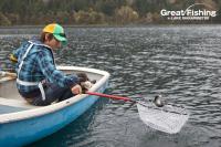 曇りで気温があまり上昇しない日にニジマスを狙う場合は、岸際(3〜6m以内)をトローリング、またはハーリングが効果的です。今日も、ルアー(ミノー)やフライ(ストリーマー)で(40〜50cm)クラスが釣れています。好調なポイントは、虹色岬周辺、音更湾など。風が穏やかな時などは、音更湾のインレットや北側ワンドの岸釣りエリアで、かけ上がりをクルージングしている大型ニジマスを狙うと良いでしょう。