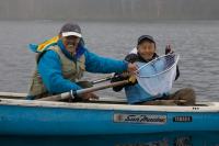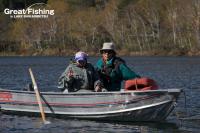 最終日にミヤベイワナ(50cm)が桟橋前でヒット。ヒットフライは、#8ゾンカー(タン)。2005年からの記録では、今年のファーストステージ初日にヒットした(50cm)とタイ記録。5年間のキャッチ&リリースにより、平均的に釣れるミヤベイワナのサイズも(30〜35cm)、また40cmクラスも昨年度よりも増して数多く釣れるようになりました。