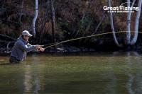 穏やかな水面には至る所で魚たちがライズ。終日ドライフライで数多くの魚がヒット。特に大型のニジマスは、陸生昆虫が溜まる岸際に集中し、ドライフライでヒットするもラインブレイクやバレが非常に多いようでした。フライロッドは(#5〜#8)、リーダー&ティペットは(3〜4X)が最適。