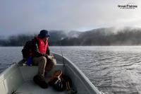 湖中央から境界線中央など、広範囲を丁寧にトローリングしてミヤベイワナ(15〜30cm)18匹ヒット。水深13〜17mが最もヒットが多いようです(島田さん/帯広市)。音更湾沖周辺㉔ではスプーン(7g)をカウントダウン60秒でミヤベイワナ(28cm)1匹ヒット(松本さん/三重県)。2の湾沖周辺㉒、湖中央周辺㉓では水深(10m前後)でアタリは大多くあるがショートバイトでなかなかヒットせず、ミヤベイワナ(25cm)1匹ヒット(橋本さん/札幌市)他。