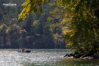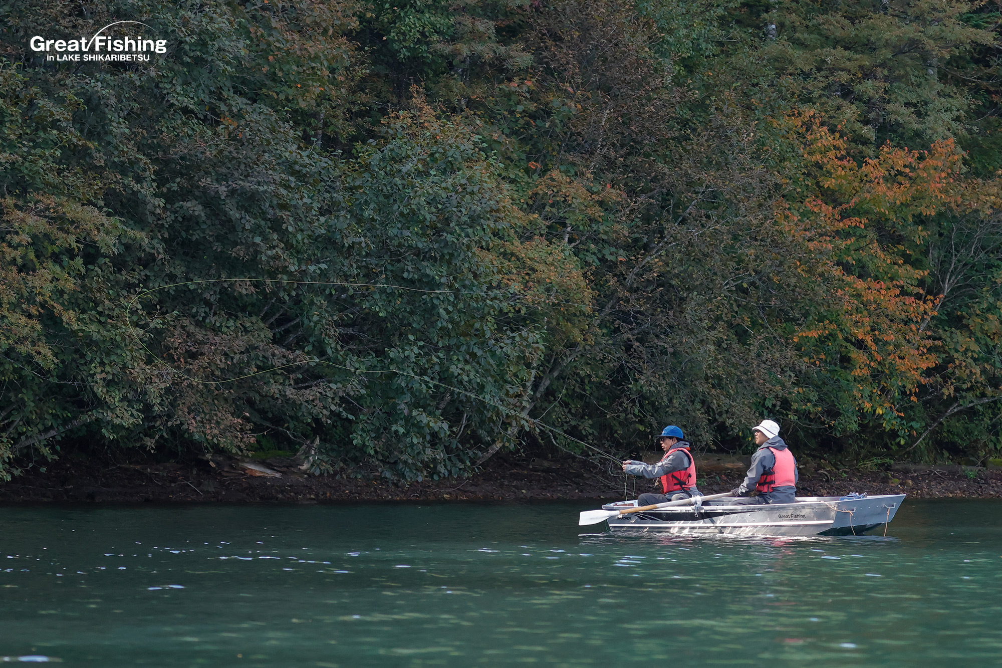 湖中央㉓周辺ではスプーン(11g)をカウントダウン40秒フォールさせてミヤベイワナ(30cm)がヒット(今城さん/恵庭市)。2の湾沖周辺㉒ではスプーン(12g)をカウントダウン40秒フォールさせてミヤベイワナ(30cm)がヒット(石澤さん/石狩市)。虹色岬③から湖中央周辺㉓の間では(シンキングラインタイプ4+マラブー/ピンク)でミヤベイワナ(30cm)がヒット(斉藤さん/大阪府)他。水温が少し下がり、早朝ミヤベイワナのヒットレンジは水深(5〜8m)とやや浅くなったようです。