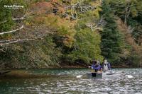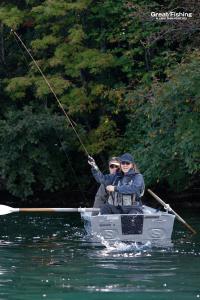 カヌー& フライフィシングでは、フローティングラインで水面直下をハーリングしてサクラマス(25cm)5匹、ニジマス(25〜35cm)5匹ヒット(金澤さん/帯広市)。