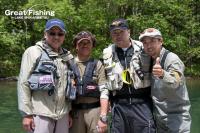 解禁初日から今日まで40cmアップのミヤベイワナが1日4〜6匹ほど釣れています。6日間でもっとも大きなものは45cm。アベレージサイズは30cm〜35cm。35cm〜39cmのミヤベイワナも数多く釣れいています。個体色はブラウンバック、グリーンバックの両方です。サクラマスやニジマスに比べあまり強い引きをしないミヤベイワナですが、40cmを超えるものはリールドラグの音が鳴るほど良いファイトをするようです。