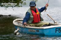 3の湾ではサクラマス(35〜46cm)が好調。フライのハーリング(シンキングラインタイプIV+#8ゴールドビーズウーリーバガー)で良く釣れています。ボートの漕ぐスピードはゆっくりめで時々フライにアクションを加えると効果的。音更湾では、ミヤベイワナが連日好調。今日は音更湾北側のかけ上がりでミヤベイワナ(23〜41cm)が数多くヒットしていました。ヒットゾーンは水深5m前後がもっと多いようです。