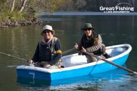ファーストステージ初日は晴れ間が広がり、程よい風が吹く絶好の釣日和。早朝は掛け上がり2〜3mの表層でミヤベイワナ(25〜40cm)、サクラマス(25〜40cm)が良く釣れていましたが、時間が経過すると共に、ポイントによっては魚たちは掛け上がりの中層〜ボトム付近まで下がった様子。しかし、解禁初日ということもありフライ、ルアーともにレンジさえ合えば数多くヒットしたようです。