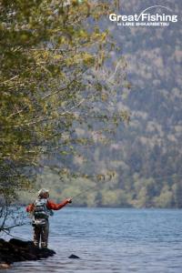 大型サクラマス、大型ニジマスがヒットしているフライラインは、シンキングタイプ4。岸釣りエリアでは、インターミディエイト+シンクティップ(タイプ3〜6)など。