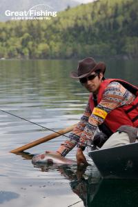 今日のビッグワン ニジマス60cm(シャクナゲ岬)(秋田さん/札幌市)然別湖ガイドマップ