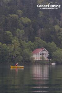 音更湾南側の岸から約15m離れた場所から、スプーン6gをボトム(水深約15m)まで沈めて、底をアクションを入れながらリトリーブ。すると大きなアタリでロッドは弧を描き、約3分間のファイトの末に(54cm)をネットイン(田中さん/上富良野町)、シャクナゲ岬の沖では、スプーン10gをカウントダウン「5」で(60cm)がヒット(秋田さん/札幌市)、湖中央では、(水深約5m)で(48cm)がヒット(田辺さん/札幌市)ほか。音更湾インレット岸釣りエリアでは、足元近くを複数の大型ニジマスがクルージングしていたようです。水温が少し上昇しニジマスの動きも活発になってきています。