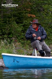 水深(1〜3m)にはミヤベイワナ(25〜40cm)の小さな群れや大きな群れが多く点在しているようです。湯の花岬【14】〜湖中央【19】では魚の活性が非常に高く、シンキングラインタイプ2を使ったハーリングまたはフライキャスティングでミヤベイワナが連続ヒット。フライは(#10マラブー/茶色)。