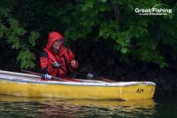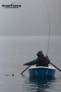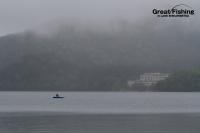 今日で4日連続の雨・・・その影響で表面の水温は上がることなく(14.5〜14.7℃)で安定しています。全体的に釣果は良く恵みの雨になっているようです。早朝は水深(1〜3m)でミヤベイワナが良くヒットしていましたが次第にレンジを下げ、午後になると水深(3〜5m)のヒットが多いようでした。今日の最高釣果は60匹(大平さん/茨城県)。